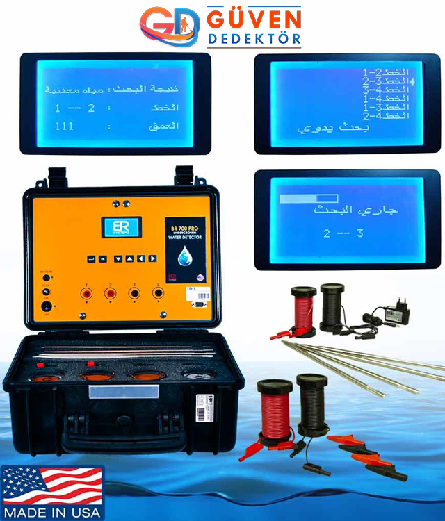 BR 700 PRO, profesyonel su ve kaçak tespit cihazıdır. Akustik ses ve toprak direnci ölçümü kullanarak suyun yerini ve türünü tespit eder. Tatlı, tuzlu ve maden suyunu ayırt edebilir, modern bir LCD ekrana sahiptir ve dayanıklıdır. Evlerde, inşaatlarda, tarım arazilerinde ve yeraltı su kaynaklarının tespitinde kullanılır.