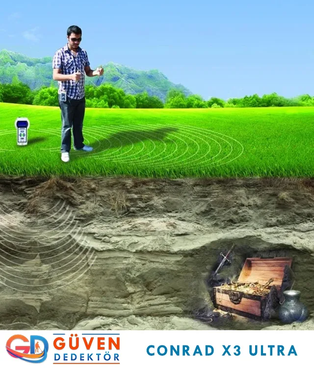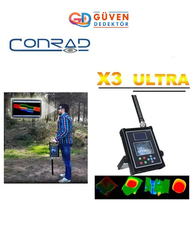 Conrad X3 Ultra Plus, Gerçek zamanlı 3D dijital sinyal işleme teknolojisi ile toprak altındaki hedefleri üç boyutlu olarak görüntüleme imkanı sunar. Sistem, 2000 metreye kadar alan tarama ve 18 metreye kadar derinlik tespiti özelliklerine sahiptir. Altın, gümüş, bakır, bronz, demir, kurşun, alüminyum ve elmas gibi metalleri tespit edebilme kabiliyetiyle geniş kullanım alanlarına hitap eder. Conrad X3 Ultra Plus, arkeolojik kazılarda, define arama çalışmalarında, madencilik ve jeoloji alanlarında etkili bir şekilde kullanılabilir.