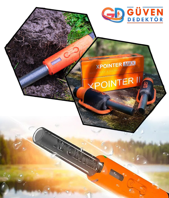XPOINTER MAX, Quest Dedektör tarafından üretilen su geçirmez ayrımlı bir pointerdir. Su altında ve toprakta metal tespiti yapabilme yeteneği, ayrım özelliği ve uzun pil ömrü ile definecilik ve hazine avcılığı gibi alanlarda kullanılmak üzere tasarlanmıştır. Üç farklı geri bildirim modu ve gece kullanımına uygunluğu kullanıcılarına önemli avantajlar sunar. Su geçirmez özelliği, her türlü ortamda kullanımı kolaylaştırır ve uzun pil ömrü ile uzun süreli aramalar için ideal bir seçenektir.